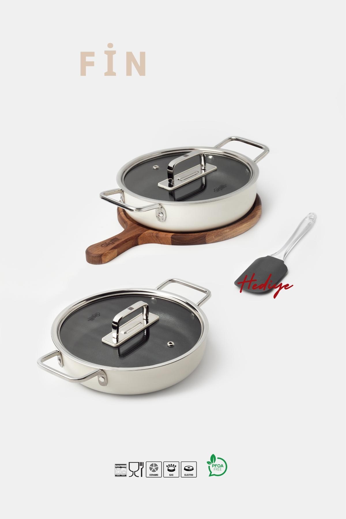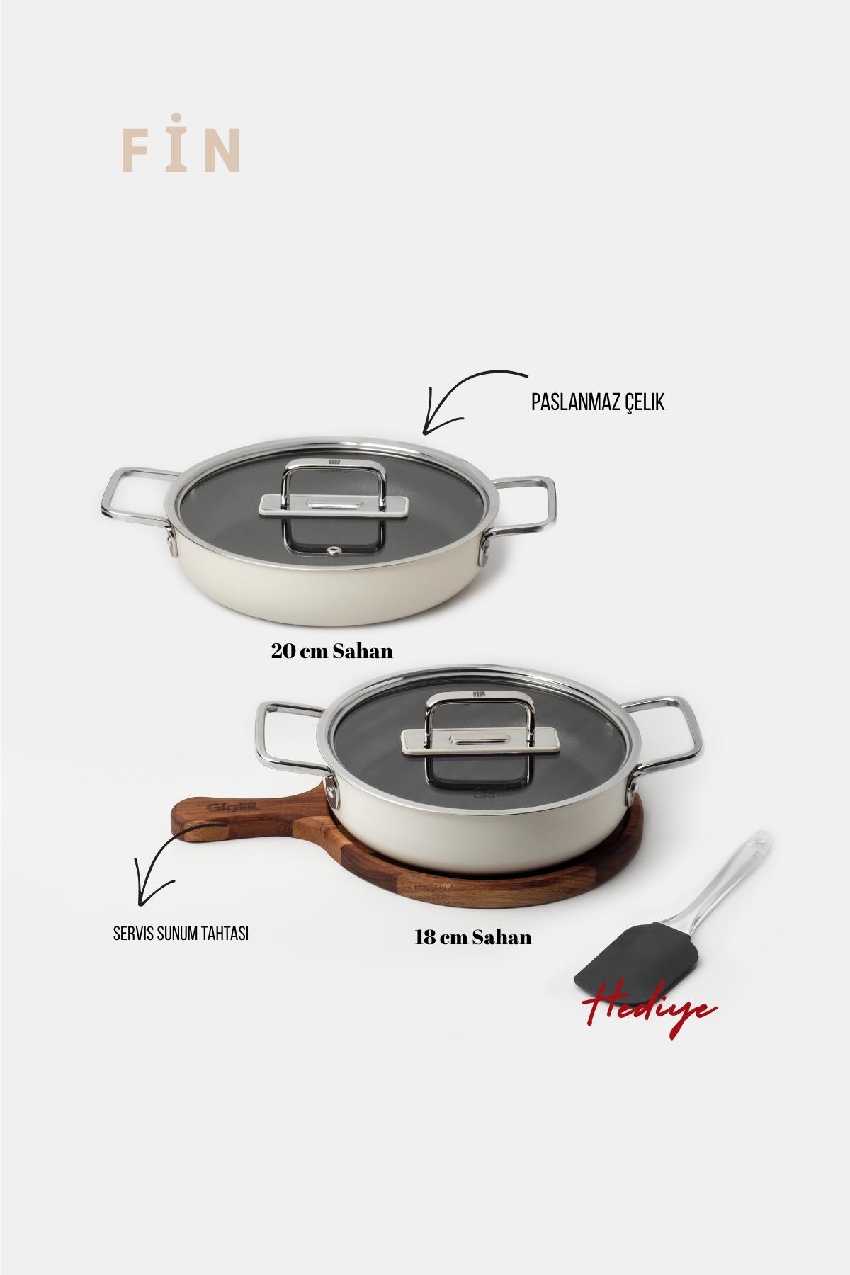 - Set İçeriği: 1 adet 18 cm sahan, 1 adet 22 cm sahan, 1 adet silikon spatula, 1 adet ahşap nihale, 2 adet kapak