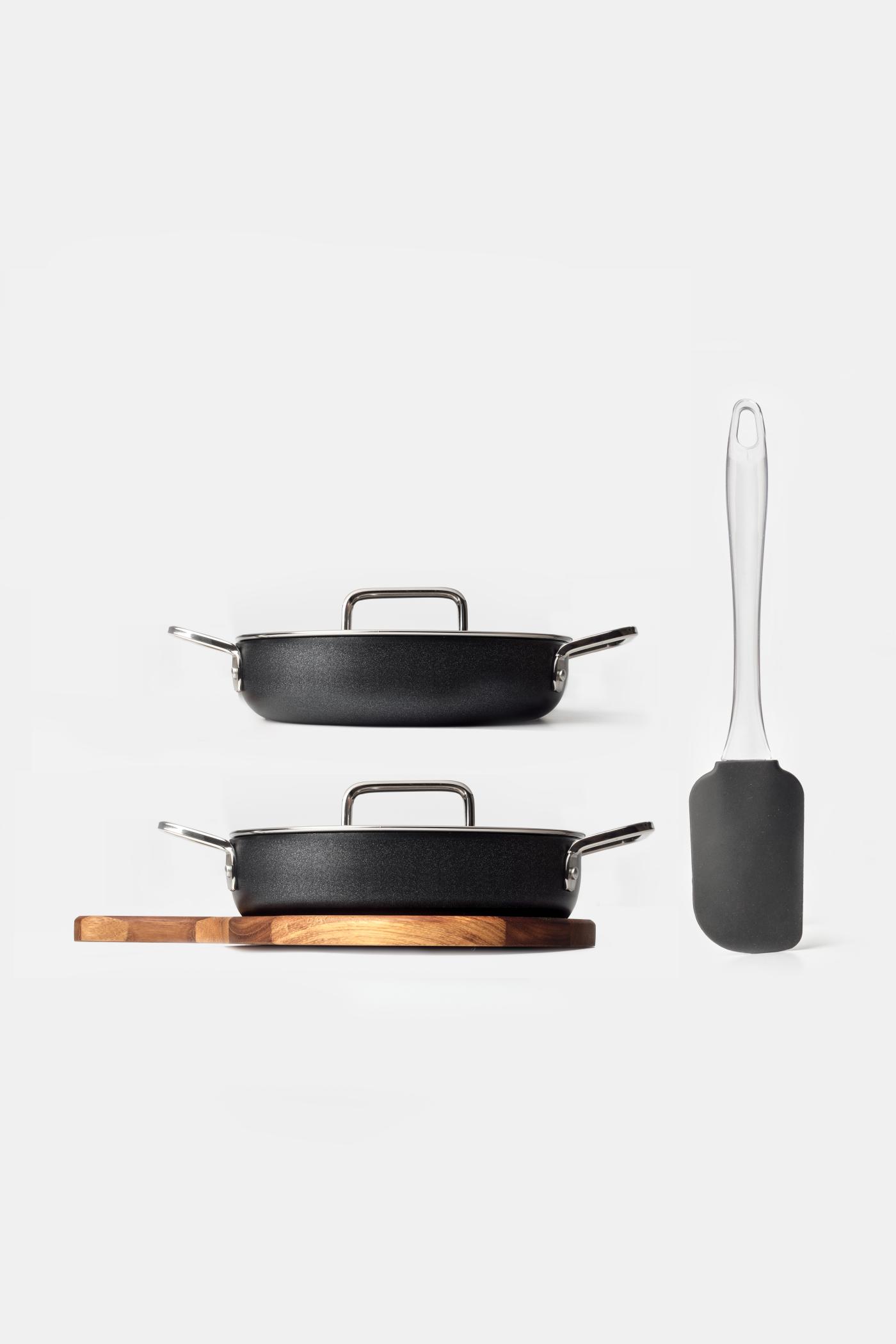 - Set İçeriği: 1 adet 18 cm sahan, 1 adet 22 cm sahan, 1 adet silikon spatula, 1 adet ahşap nihale, 2 adet kapak
