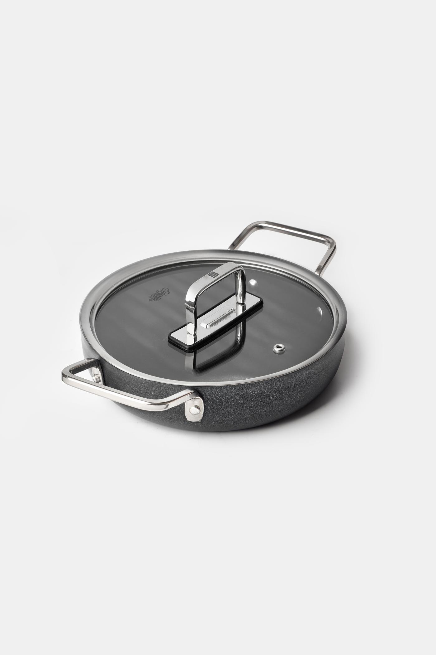 Titanyum kaplamalı iç yüzeyi, yiyeceklerin sahan tabanına yapışmasını önler. Bu yapı, daha az yağ kullanarak sağlıklı pişirme imkânı sunarken temizlik sürecini de kolaylaştırır. Paslanmaz çelik kenarlı, ısıya dayanıklı cam kapaklar sayesinde pişirme sırasında yemeği kontrol etmek mümkündür. Kapaklardaki buhar çıkış özelliği, taşma riskini azaltmaya yardımcı olur.