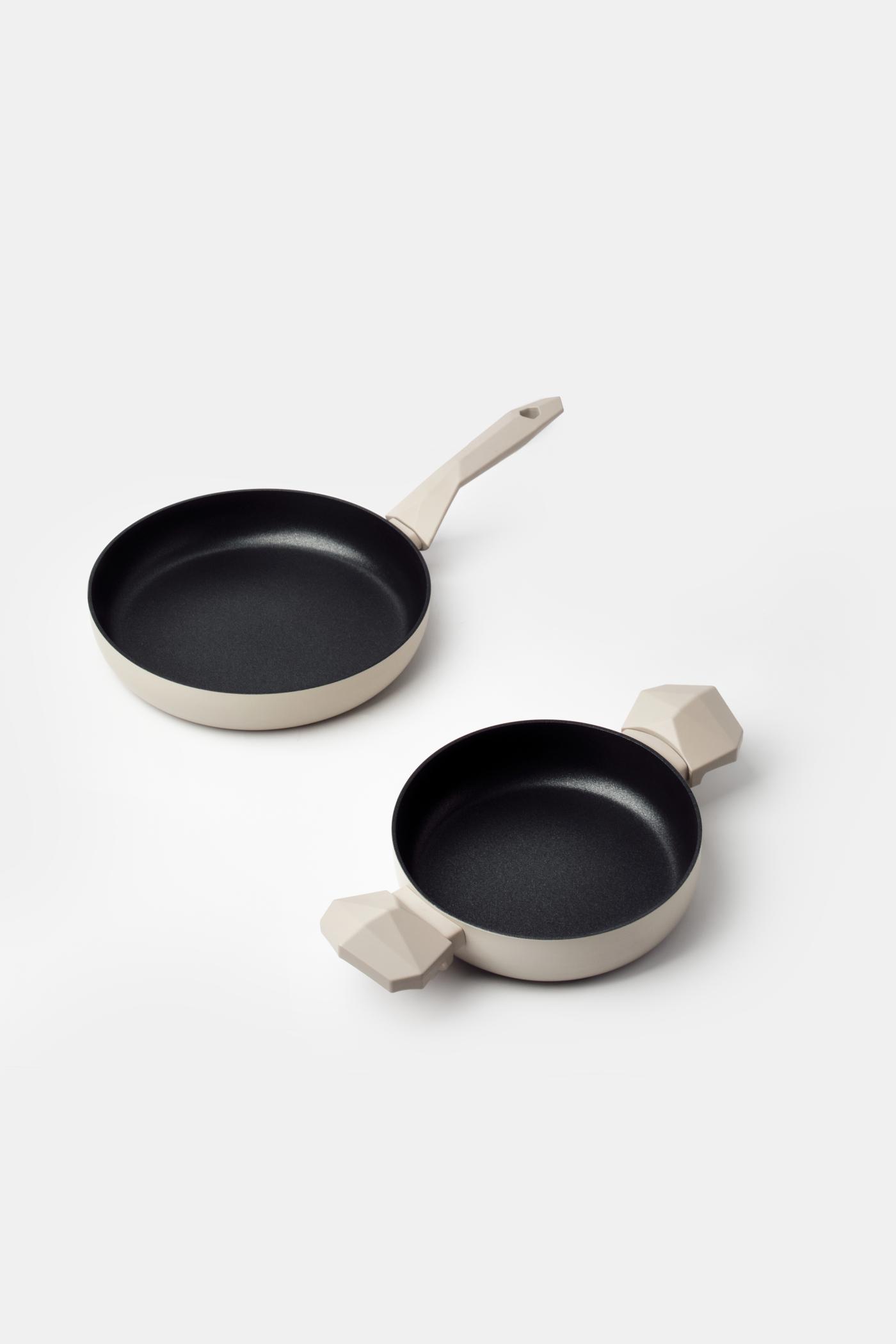 20 cm sahan; omlet, menemen, sebzeli kızartmalar ve hızlı tarifler için pratik bir kullanım sunar. 26 cm tava ise biftek, balık, sebzeli sote ve kızartmalar gibi daha geniş yüzey gerektiren tariflerde rahatlık sağlar. Krem modern dış yüzeyi, mutfaklarda sade ve güçlü bir görünüm oluşturur.